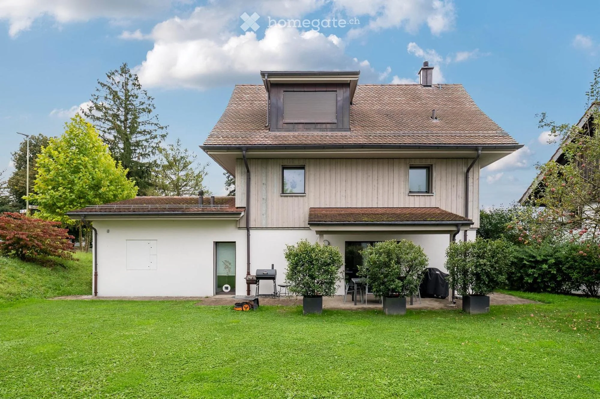 Dieses 2014 erbaute 4.5-Zimmer-Haus mit Galerie/Büro im Dachgeschoss überzeugt durch sein einzigartiges Raumkonzept, inspiriert vom Grundriss einer alten Scheune. Auf rund 154 m² Wohnfläche bietet es ein stilvolles Wohnambiente mit hochwertiger Ausstattung, zwei Gartensitzplätzen, gemütlichem Schwedenofen, moderner Küche mit Miele-Geräten und nachhaltiger Erdsondenheizung. Ideal für Familien mit Anspruch an Komfort, Stil und Lebensqualität.